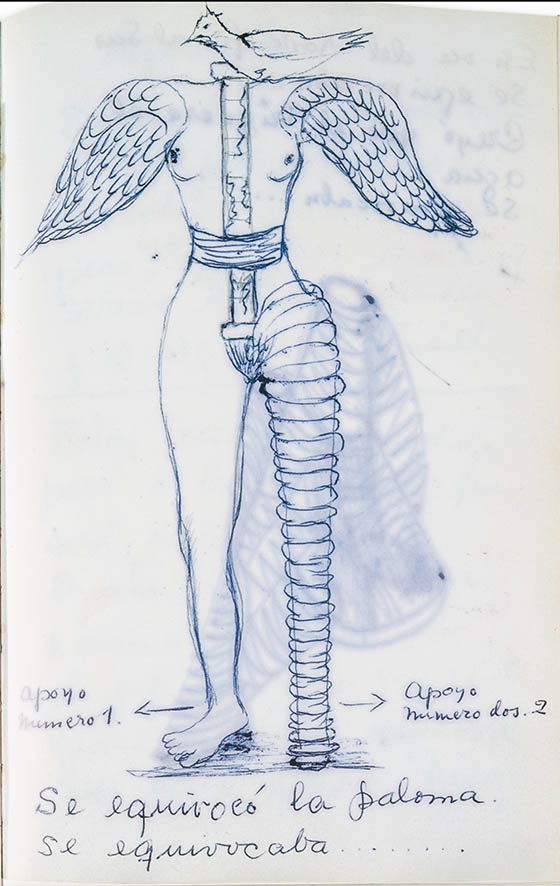 Frida Kahlo’s diary (1944–1954), where she wrote statements such as: “The dove erred. It was erring . . . ”