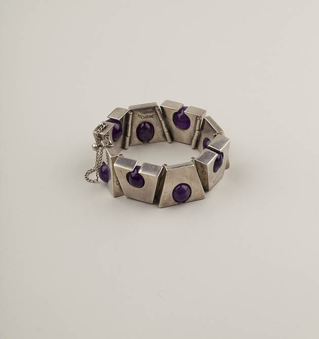 Silver bracelet with inlaid stone